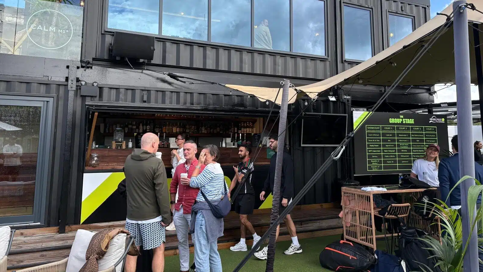 The glass-walled courts were surrounded by a buzzing bar and lively crowd. Friends, colleagues, and families came to share the excitement, cheer on their favourite participants, and soak up the love..